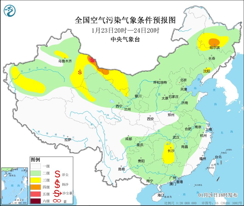 未來一週,新疆天山北坡城市羣大氣擴散條件較差,有中至重度霾,夜間至早晨時段多大霧天氣。其中,23日至24日,受冷空氣及降雪影響,霾天氣減弱消散。此外,24日,受冷空氣大風影響,新疆東部、青海北部、甘肅西部、內蒙古西部等地的部分地區有揚沙或浮塵天氣。