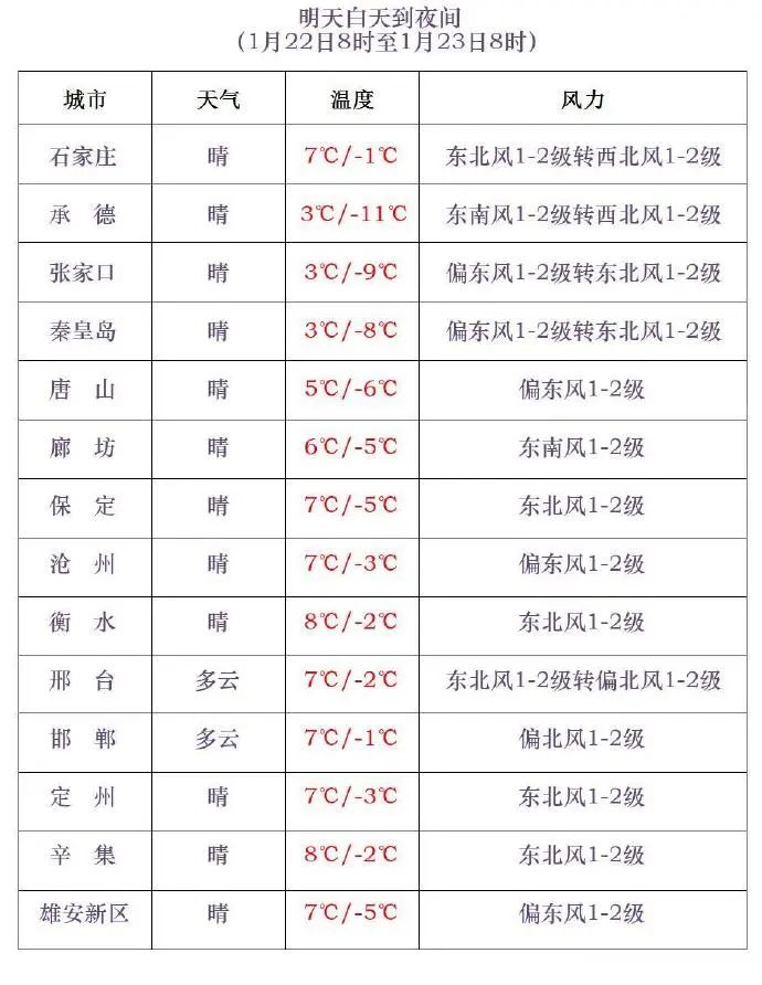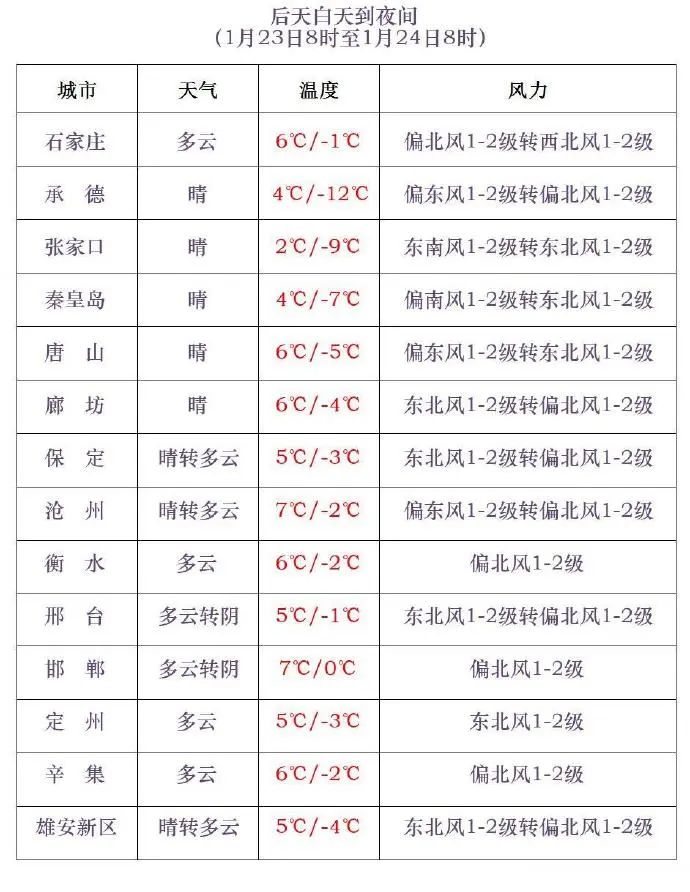 *明天夜間到23日,*石家莊南部、邢台、邯鄲晴轉多雲,其他地區晴間多雲。