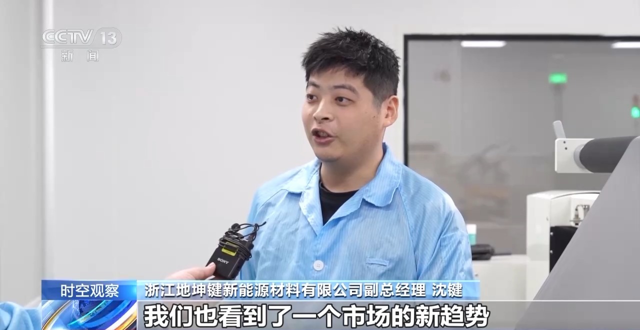 *浙江地坤鍵新能源材料有限公司副總經理 沈鍵:*我們也看到了市場的新趨勢,比如説摺疊屏手機、智能穿戴設備的普及,也對電池的續航提出了更高的要求。我們也在固態電池方面做技術攻關,力爭在下一代產品中得到技術突破。