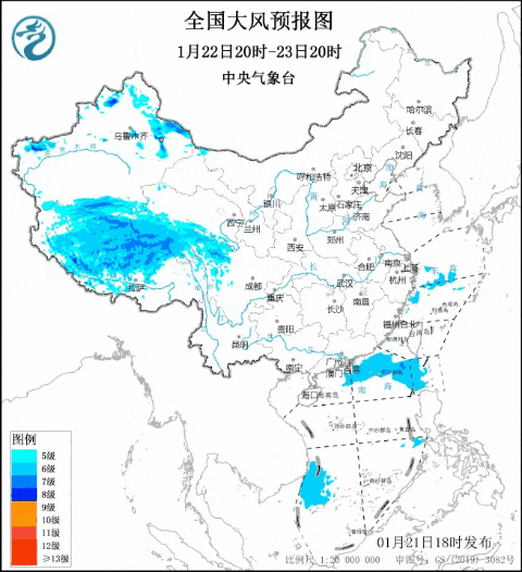 據中國天氣網最新預警信息,1月21日17時11分,新疆氣象台發佈大風藍色預警信號。