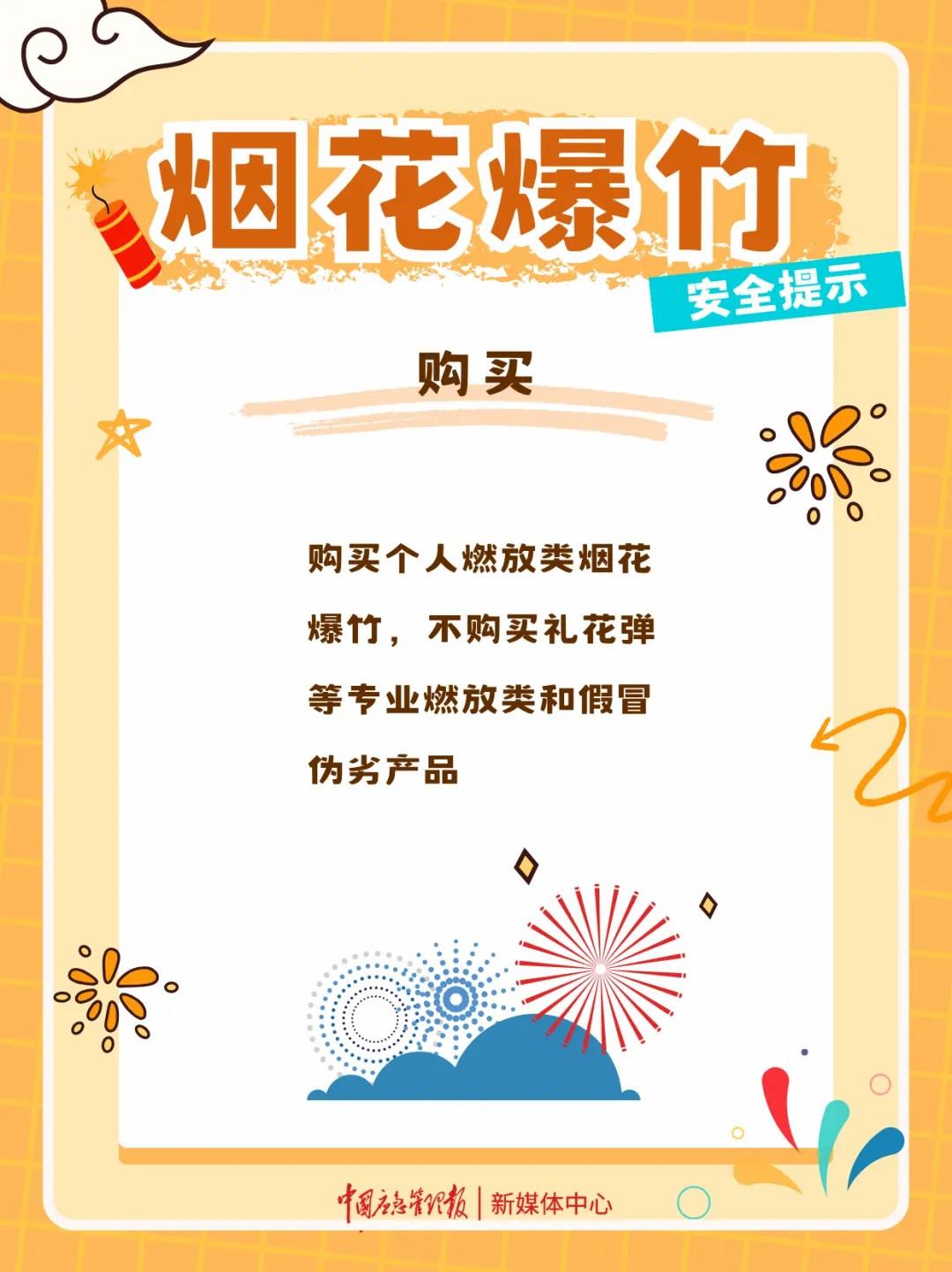 消費者應關注當地人民政府劃定的限制或者禁止燃放煙花爆竹時段、區域等燃放政策規定,自覺遵守當地政策要求,在允許燃放的時段和區域,正確、安全地燃放煙花爆竹。