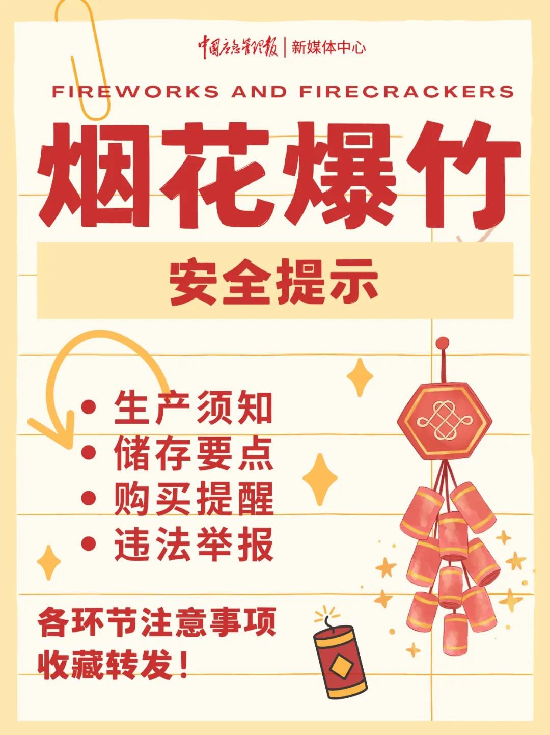 根據鄭州市政府《關於加強2025年春節期間煙花爆竹安全管理的通告》等相關規定,鄭州市發佈2025年煙花爆竹燃放安全提示: