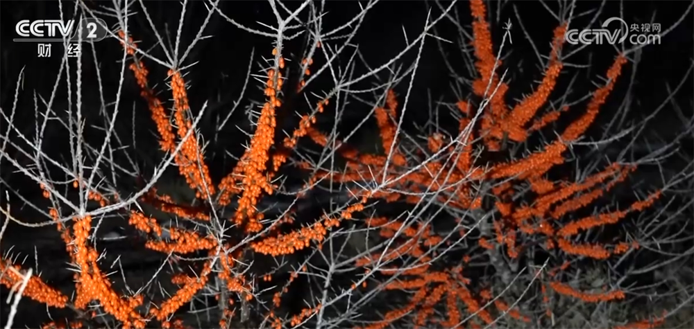 每天凌晨5點,新疆白楊市的萬畝沙棘種植基地就開始忙碌起來,果農們戴着頭燈,在寒夜中開始採收沙棘。