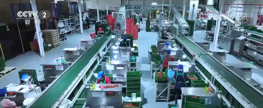 在山東萊西市一家番茄種植基地的温室裏,一行行立體化無土栽培的番茄架錯落有致,一顆顆番茄正享受着“日光浴”。經過採摘包裝,這些新鮮番茄將從這裏發往全國各地。
