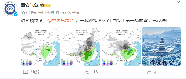1月22日,據西安氣象消息,2025年西安市第一場雨雪要來了。