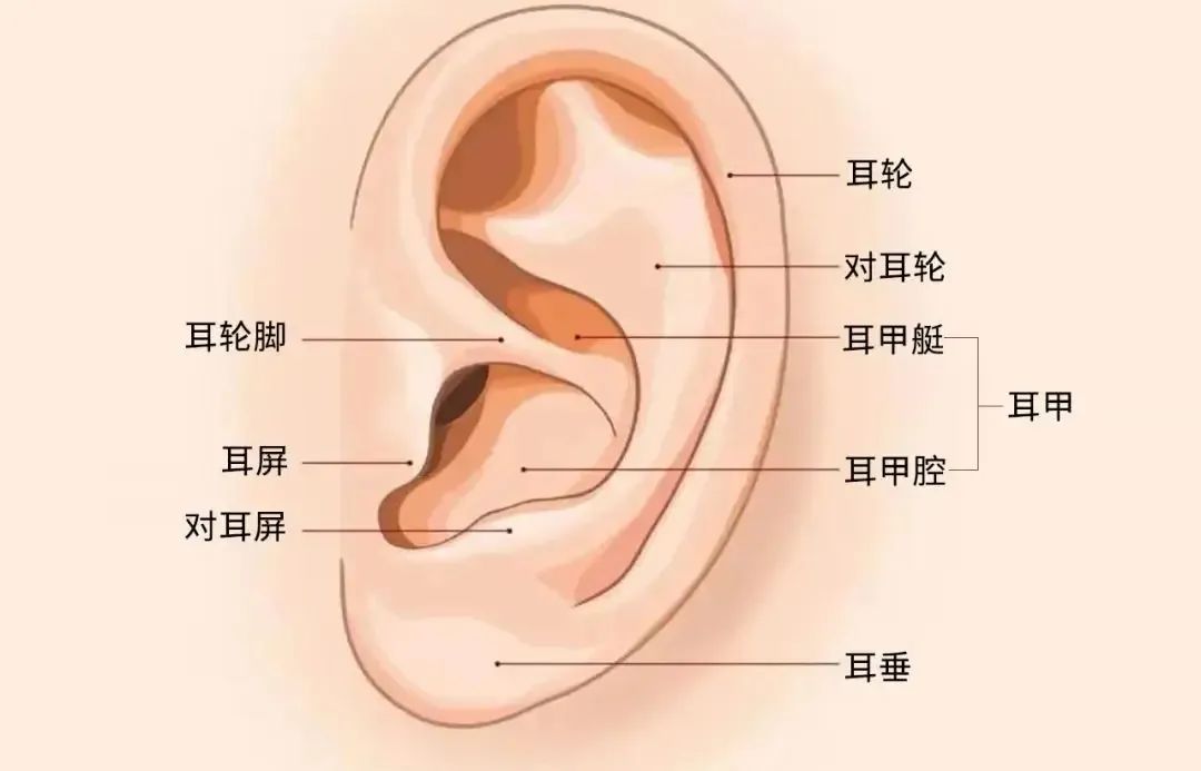 耳朵造型就像倒置的胎兒,頭部朝下,臀部在上,背朝外,四肢屈曲環抱於耳廓內側,人體五臟六腑和各組織器官的反映點在耳朵上都有所體現。