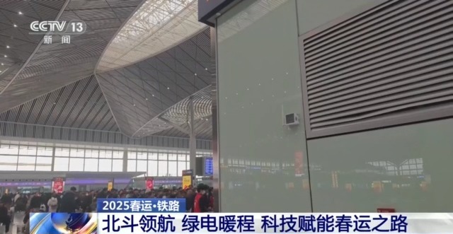 *總枱央視記者 陳晰:*綠色能源的應用也是春運中的一大亮點。“光伏 + 車站”的“綠色車站”模式興起,像杭州西站的站房屋頂的光伏電站,就是由7540塊單晶硅光伏板組成,年均發電量達231萬度,每年預計減少二氧化碳排放2300噸。產生的電能主要供車站內各類設施設備使用,旅客在車站內也是更加温暖。