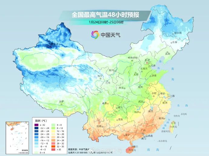 明天(1月24日)寒潮將主要影響新疆地區,後天(1月25日)影響西北地區大部,25日至27日影響中東部大部地區。