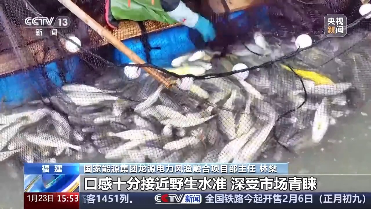 *國家能源集團龍源電力風漁融合項目部主任 林燊:*這些生活在平台養殖網箱的大黃魚,就像住進了健身房,一個個像極了“健身大黃魚”,肉質變得更加緊實。而且這些魚類還呈現出了“野化”現象,口感十分接近野生水準,深受市場青睞。