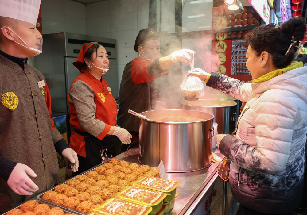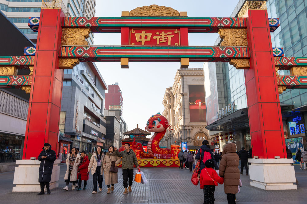 2025年1月22日,遊客在瀋陽中街長安寺衚衕小吃街遊玩。