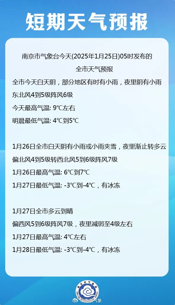 雨夾雪+冰凍!7級陣風!南京最新發布