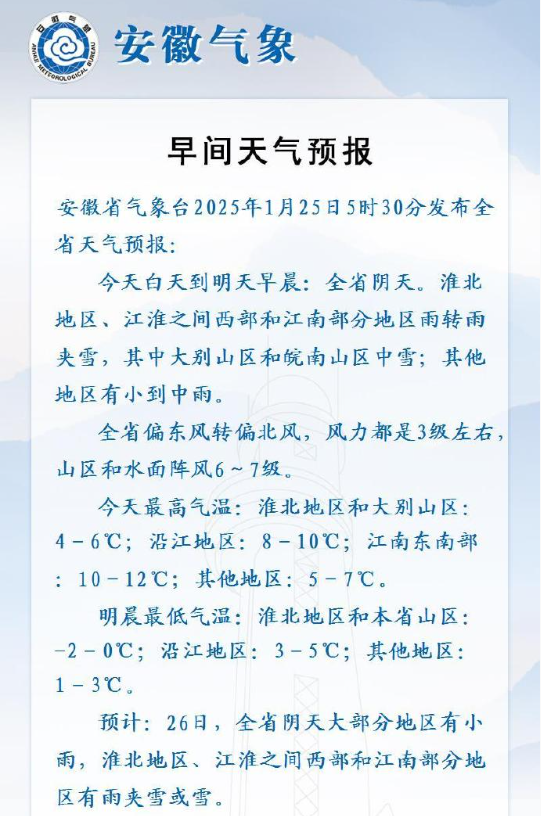 最新預報:安徽今明兩天將迎中雪雨夾雪!
