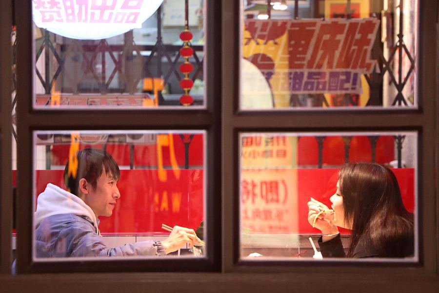人們在山東省高密市一家餐廳就餐(2024年12月31日攝)。新華社發(李海濤攝)
