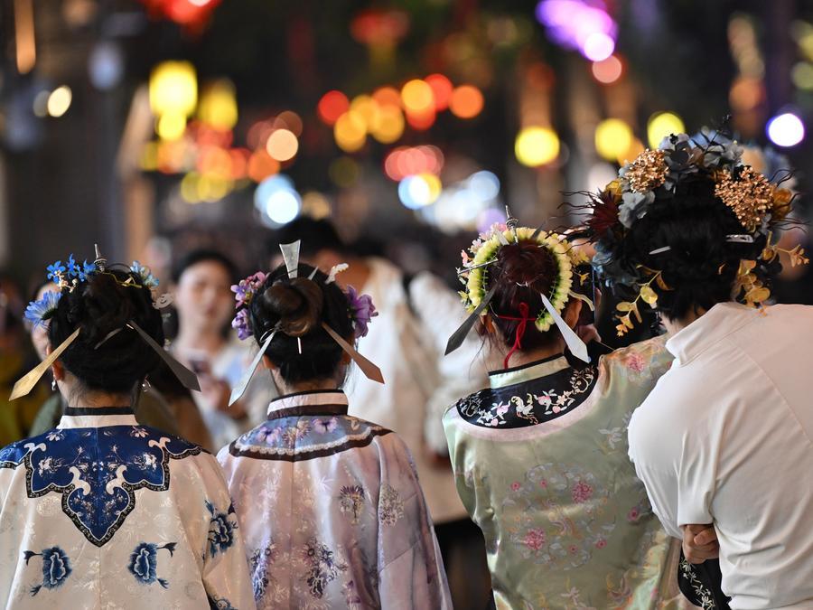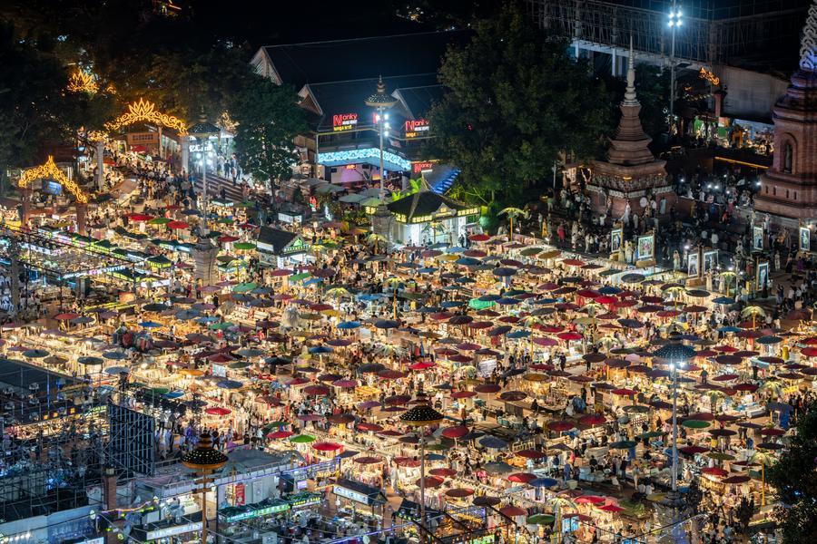 雲南省西雙版納傣族自治州景洪市的星光夜市(2024年12月7日攝)。新華社記者胡超 攝