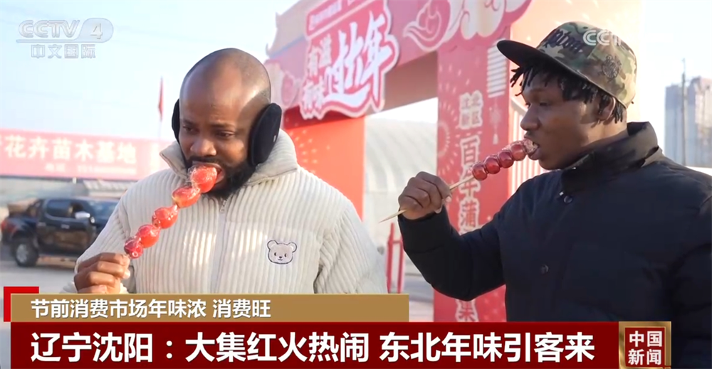在遼寧瀋陽,大集上各種春聯、福字和燈籠組成了一片紅色的海洋,喜慶的年味兒瞬間拉滿。香氣四溢的特色美食和琳琅滿目的各色商品,讓人們目不暇接。逛大集買年貨的客人們,也從過去周邊的十里八村變成了現在的五湖四海。