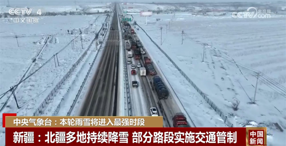 從23日開始,新疆北疆多地出現了持續降雪天氣,局地伴有大風降温。烏魯木齊市降雪持續兩天,新增積雪厚度超過10釐米。根據新疆高速交警提供數據:受降雪影響,部分路段實施了交通管制,前往新疆阿勒泰地區的S21阿烏高速全線實行雙向交通管制。G7京新高速部分路段受降雪天氣影響路面濕滑,以警車帶道的方式進行通行,危化品車、黃牌客車、大件運輸車限行,沿線匝道收費站關閉。