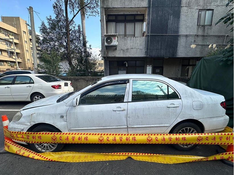 警方於24日深夜在新竹市某處偏僻道路尋獲兇手逃逸所乘的白色轎車。圖源:中時新聞網