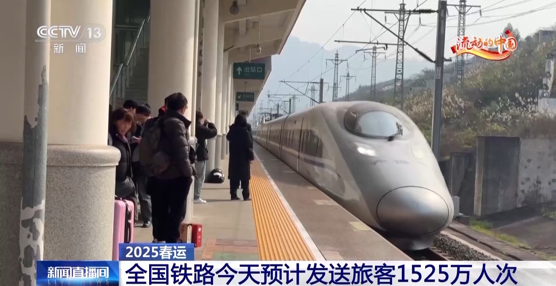 今天,全國鐵路預計發送旅客1525萬人次,計劃加開旅客列車2111列。國鐵北京局今天預計發送旅客130萬人次,春運以來首次突破130萬人次。國鐵廣州局今天預計發送旅客244.8萬人次,有望刷新春運單日發送旅客歷史紀錄。