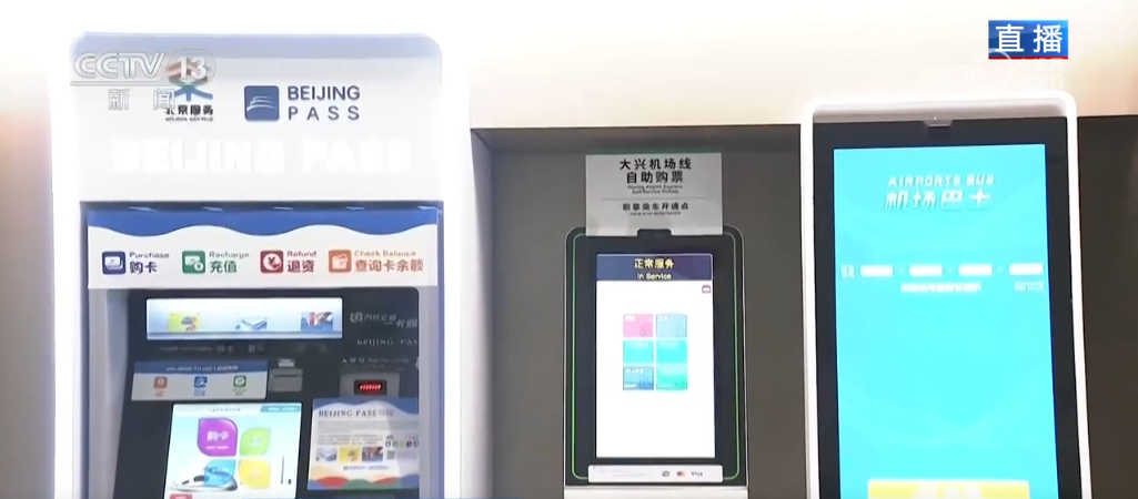 在記者旁邊看到有一台可以自動識別人臉,可提供14種語言的即時翻譯設備,使用是不是方便?此外,現場還看到這裏有提供中英雙語服務的各種自助設備購買機場大巴票、地鐵票等,都可以在這裏辦理。
