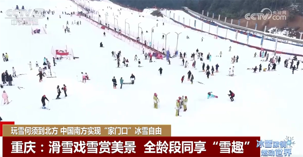 在重慶,高山冰雪旅遊持續升温。在海拔1800多米的南天湖國際滑雪場,滑雪愛好者盡情享受滑雪樂趣,同時欣賞沿途壯美的雪景。