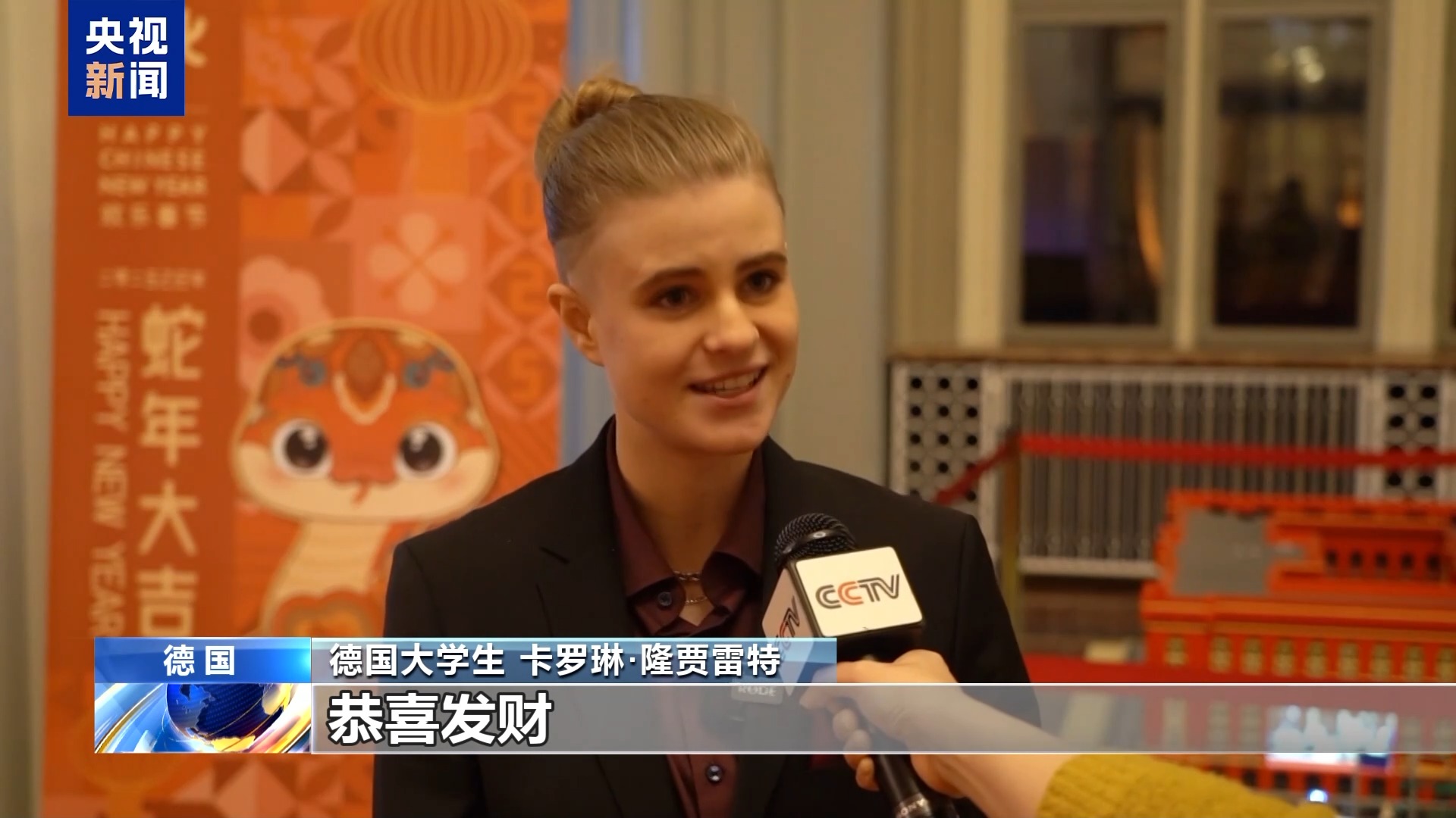 *德國大學生 卡羅琳·隆賈雷特:*我祝我的中國朋友春節快樂,我祝大家恭喜發財。