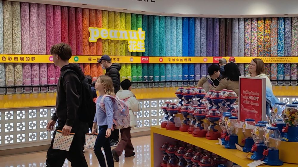 在南京路上的第一食品商店,大白兔奶糖、汪裕泰茶葉、石庫門黃酒都是老外喜歡的“老字號”伴手禮。同樣搭上這波消費熱潮的還有各種新“國貨”品牌。
