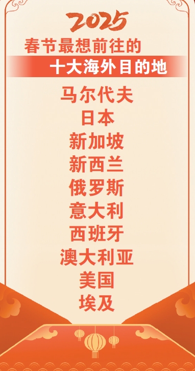 【環球時報記者 任筱楠 丁雅梔 環球時報駐美國特約記者 卓然 曾瑞】編者的話:“中國延長春節假期預計將帶來創紀錄的旅遊旺季。”美國Skift旅遊新聞網日前報道稱。今年8天的法定假日激發更多人選擇“新春旅行”。多家旅遊機構根據預訂情況發佈的報告顯示,2025年春節假期消費者出遊意願高漲,國內遊、出入境遊均呈現明顯增勢。為進一步瞭解春節期間遊客的出遊動向,《環球時報》日前邀請網友評選出了春節期間最想前往的國內、海外目的地以及偏愛的旅行體驗。結果顯示,“北上賞雪,南下避寒”依然是國內遊客冬季出行的主流選擇。與此同時,在“申遺成功”後的首個春節假期,非遺體驗熱度高漲,“打卡非遺活動,過地道中國年”成為遊客的熱門選擇。而在“免籤圈”持續擴容影響下,入境遊高速增長,外國人扎堆來華過年。《環球時報》也邀請網友向外國遊客推薦中國不同地區的春節民俗,一起在旅行中歡度中國年。