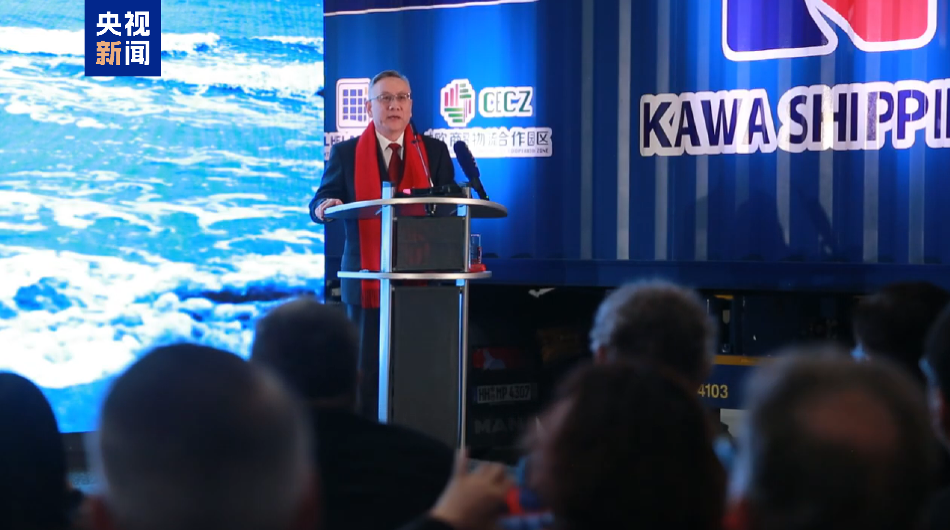 當地時間1月24日,“中歐快航”接船儀式在德國北部威廉港物流園區舉行,標誌着連通中國長三角地區與德國唯一深水港的“中歐快航”直達航線成功完成首航。中國駐漢堡總領事叢武、德國下薩克森州經濟部國務秘書弗蘭克·杜茲、威廉港市市長卡斯滕·費斯特(Carsten Feist)等中德各界人士260餘人出席儀式。