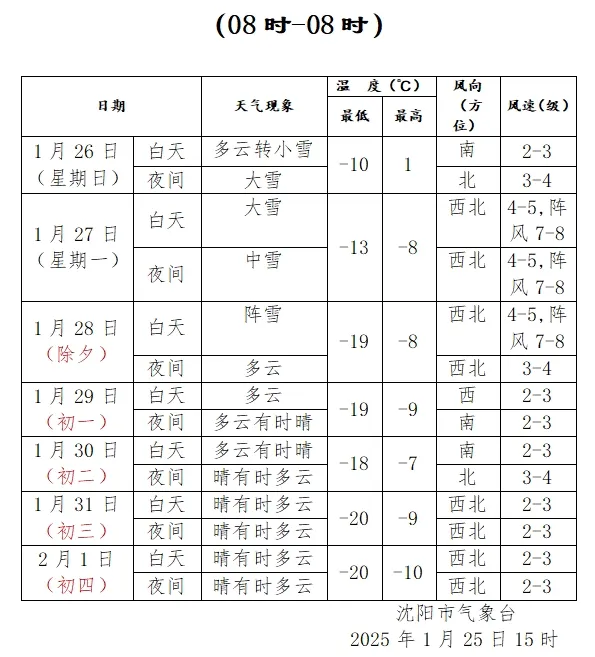 28日白天瀋陽地區陣雪,平均降水量0.1~2毫米,新增積雪深度0~2釐米。(瀋陽市氣象台2025年1月26日7時10分發布)