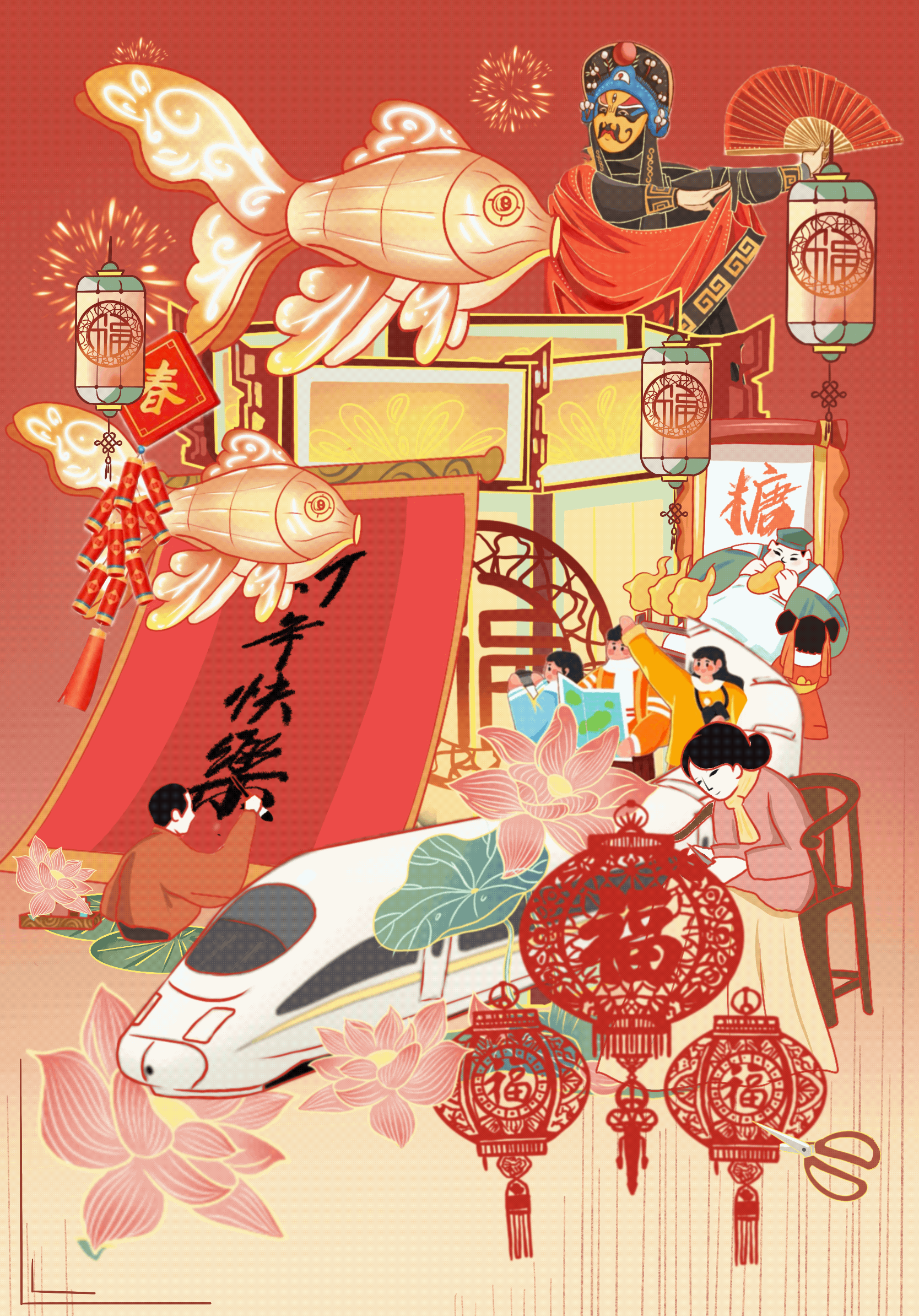 非遺與春運的邂逅,為旅途增添濃濃年味,助推着中國非物質文化遺產大放光彩。近日,在連雲港高鐵站,剪紙、麪塑、吹糖人、雲霧茶等十餘位非遺傳承人齊聚一堂展示“絕活”;在榮成開往北京南的G1088次列車上,楊家埠木版年畫、高密剪紙和濰縣布玩具等山東地域特色的非遺手造吸睛無數……列車飛馳、“非遺”火熱,“流動的中國”進一步拓展中華優秀傳統文化的傳播渠道和方式,不斷增強“美好中國”的吸引力、影響力。