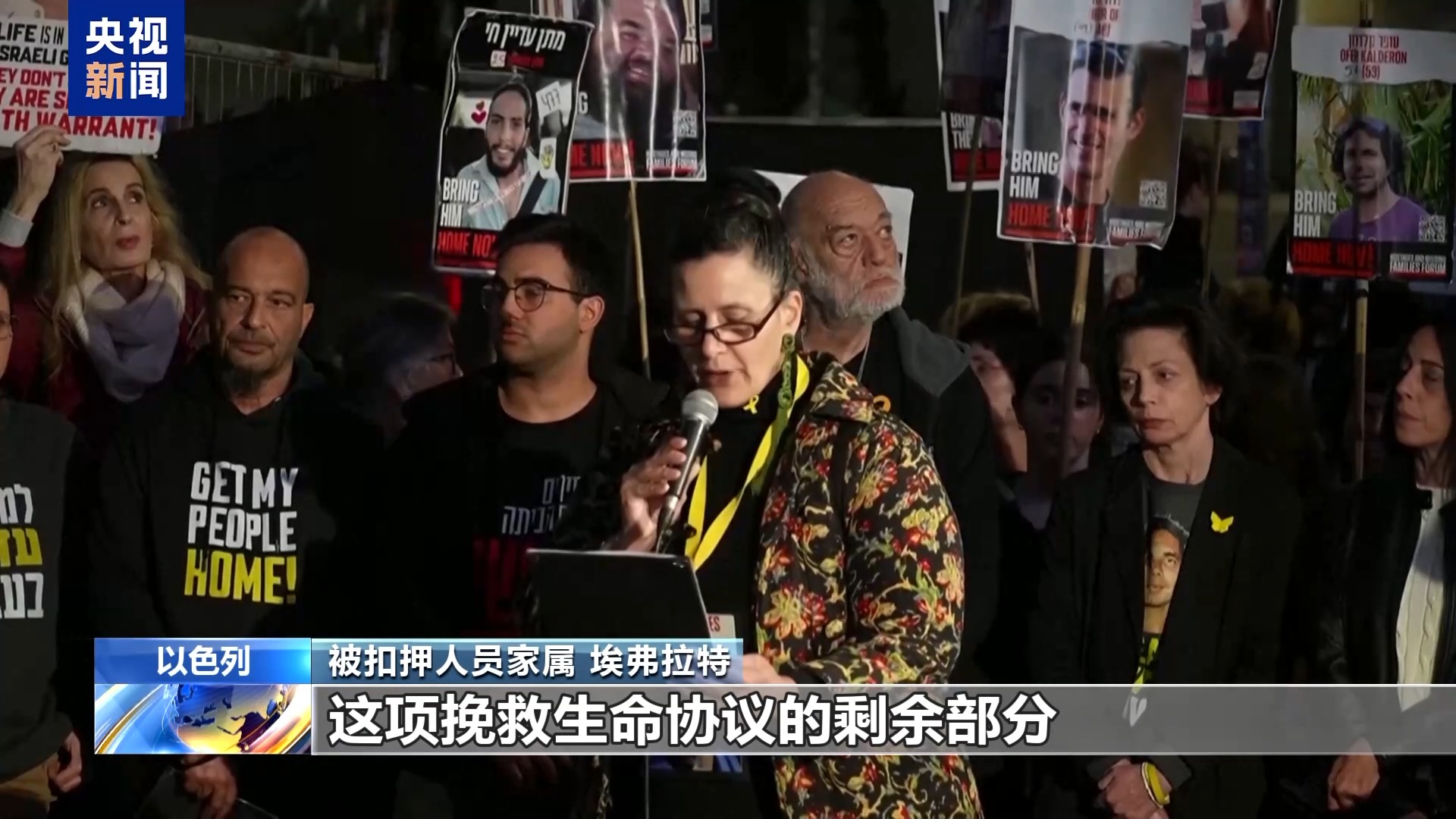*被扣押人員家屬 扎西羅·沙哈爾·莫爾:*到目前為止,內塔尼亞胡還沒有承諾全面執行這項已簽署的停火協議。內塔尼亞胡,我們要求你向公眾宣佈,你會全面執行停火協議,今天向談判小組提供敲定協議所需的全部授權。