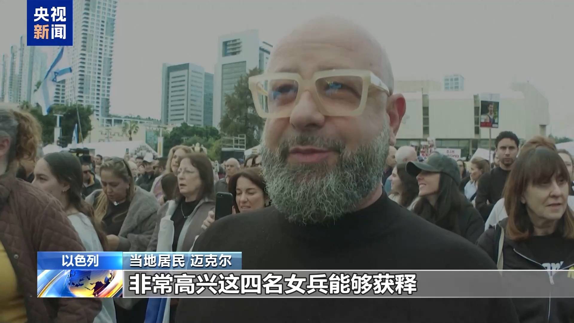 *當地居民 邁克爾:*我們顯然非常興奮,非常高興這四名女兵能夠獲釋。當然,我們希望其他被扣押人員也能獲釋,但非常擔憂這一進程是否還能繼續下去。