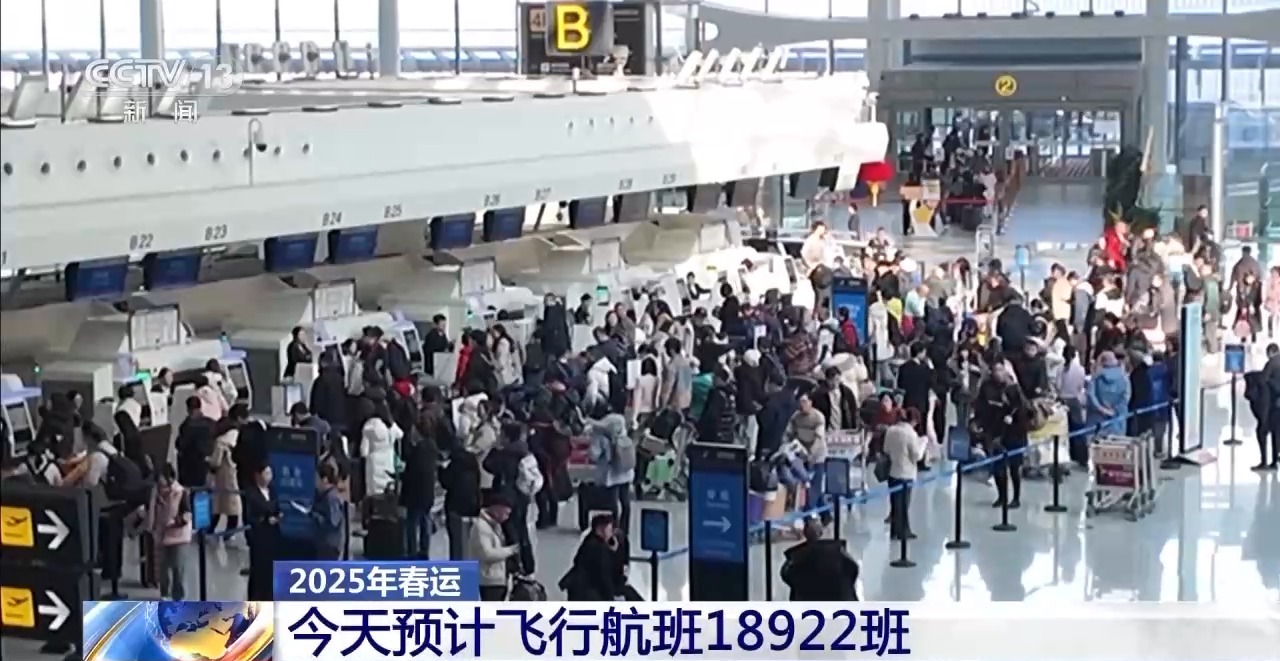 民航方面,今天預計飛行航班18922班。春運前12天(1月14日至1月25日),民航旅客運輸量日均226.56萬人次,較2024年增長8.6%。
