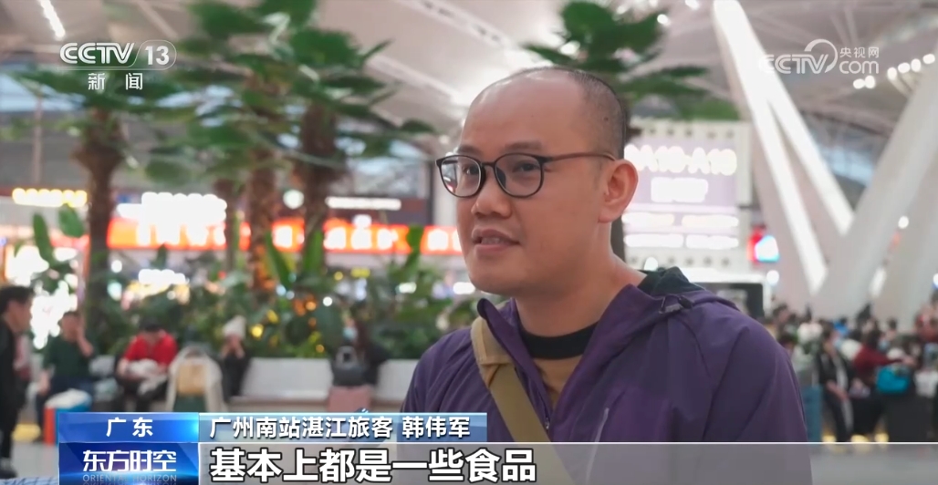 廣州南站湛江旅客 韓偉軍: 基本上都是一些食品或者日用品,買了一些保暖內衣給老人家。