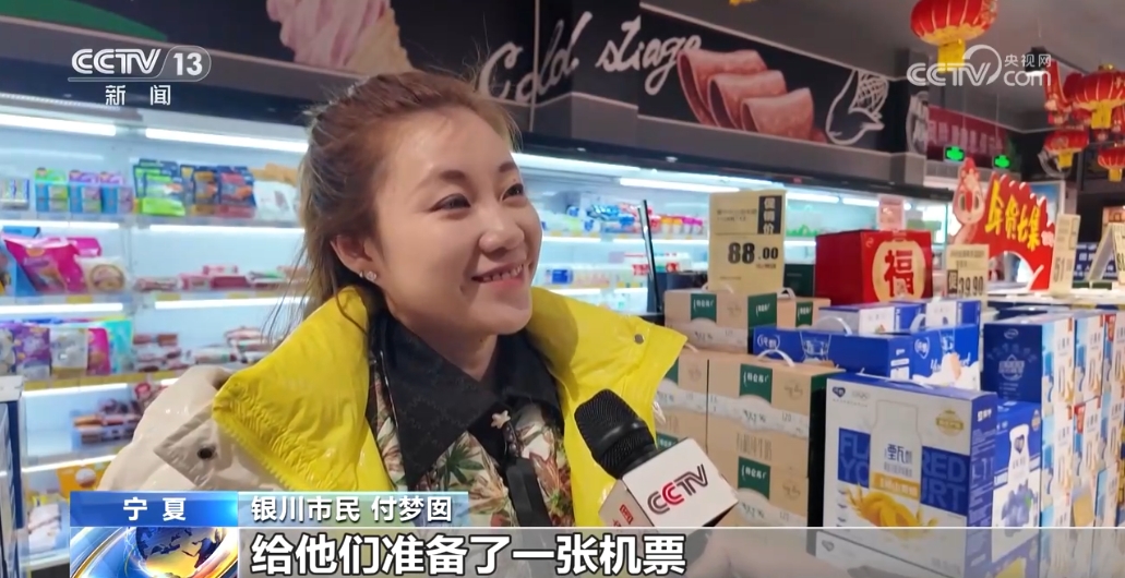 銀川市民 付夢囡: 給他們準備了一張機票。父母上年紀了,怕花錢,現在我們的日子好過了,希望他們能出去看一看祖國的大好河山。