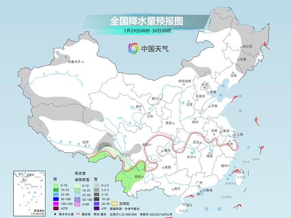 後天,新疆西北部和南疆高海拔山區、西藏西部和東部、內蒙古東北部、東北地區中北部、川西高原南部、雲南西北部等地部分地區有小到中雪或雨夾雪。雲南中北部等地部分地區有小雨。