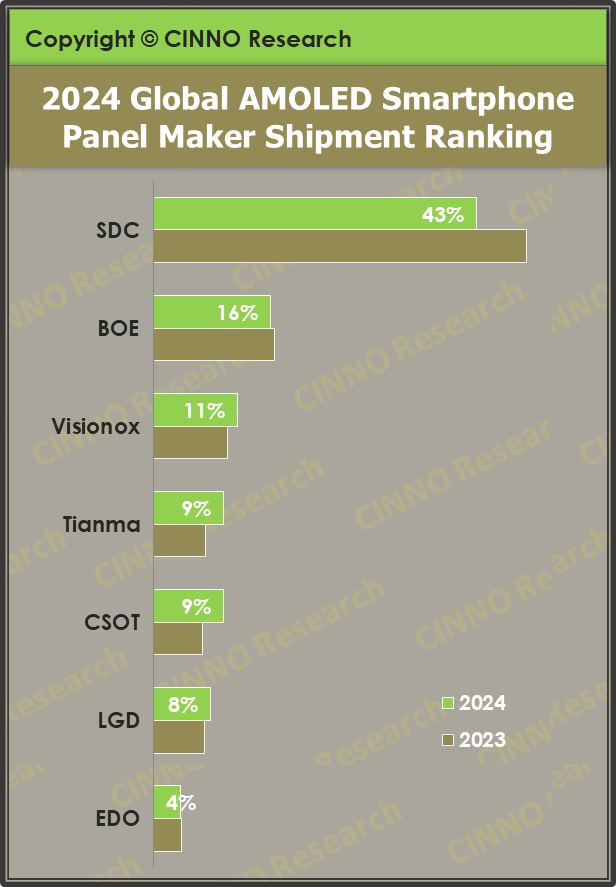 2024年全球智能手機面板出貨前3強出爐,維信諾等國內廠商佔2席