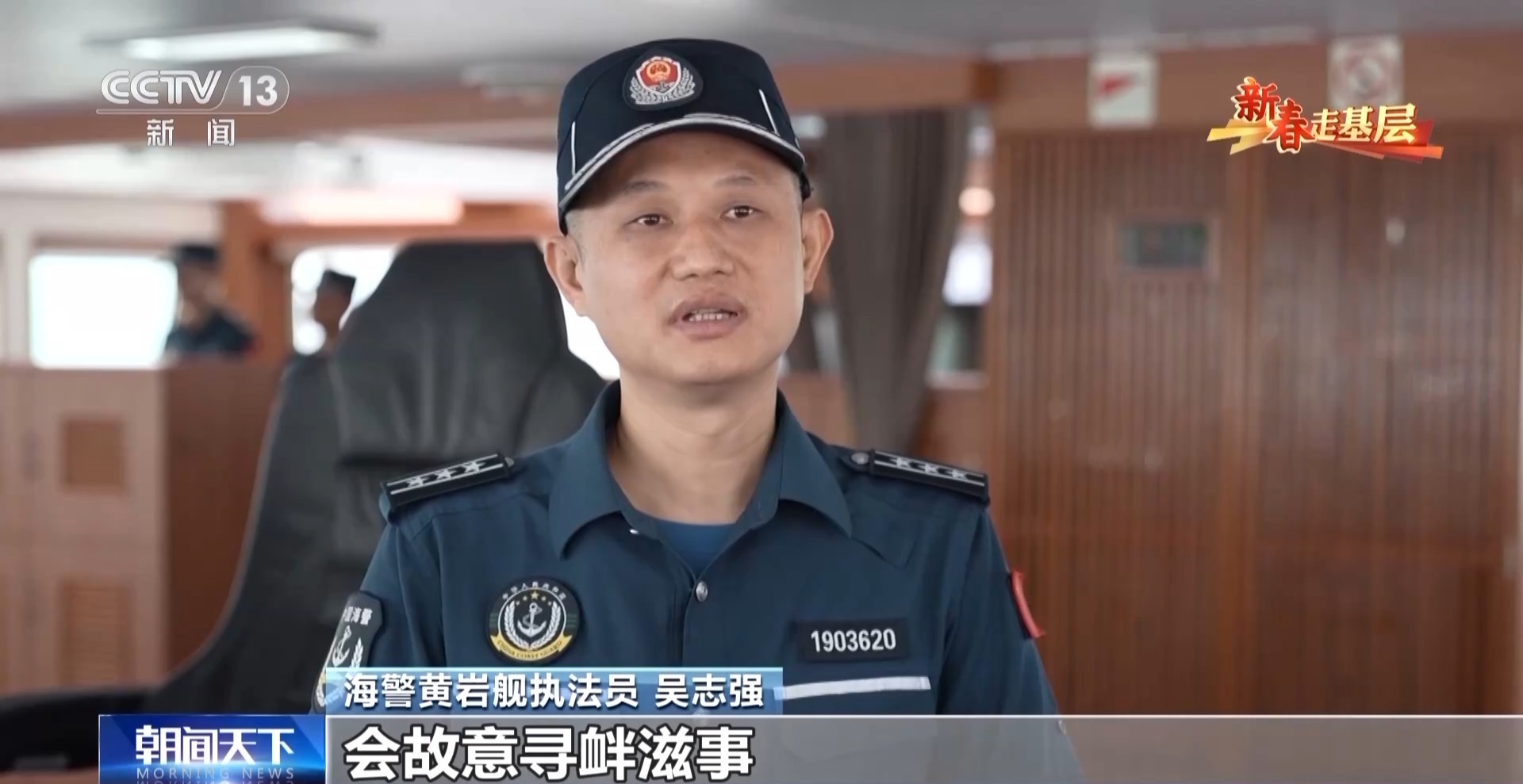 *海警黃岩艦執法員 吳志強:*有時候外籍侵權船舶會故意尋釁滋事,甚至會橫插我們的船頭、突然間向我轉向,做出一些可控式的摩擦,主動碰瓷這種特別危險的動作。以前我年輕氣盛的時候,真的很想上去硬槓,但是我身穿這身執法服,代表的是中國海警,我就時刻提醒自己,保持冷靜,一定要嚴格依法依規進行驅離,堅守底線、寸步不讓。對於這種激進的挑釁生事,我們保持專業、冷靜、剋制,同時也絕不會姑息。