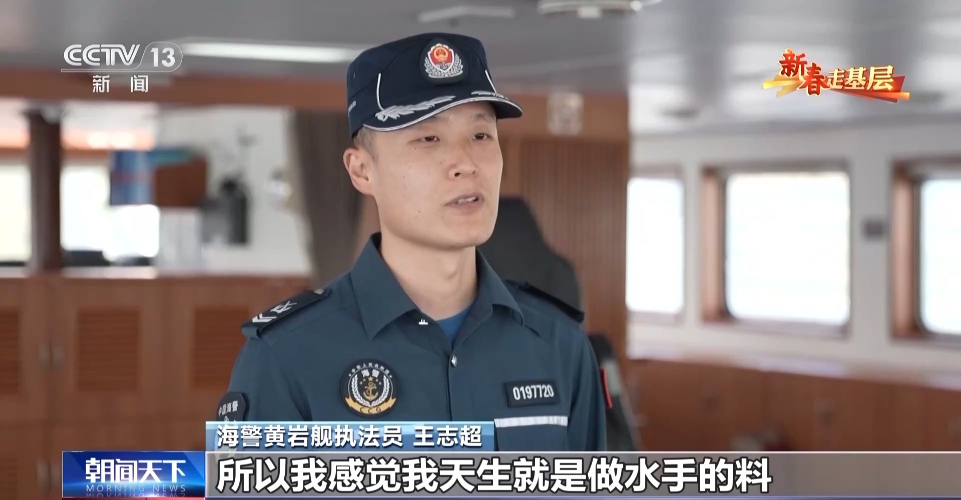 *海警黃岩艦執法員 王志超:*我們海警也是普通人,雖然大部分人都適應了海上的這種生活,但是遇到一些惡劣的海況,比如颱風、潮湧,很多人也會噁心暈船。但我就不一樣,我從上船之後就沒有暈過船,所以我感覺我天生就是做水手的料,在海警的崗位上,我特別適應。