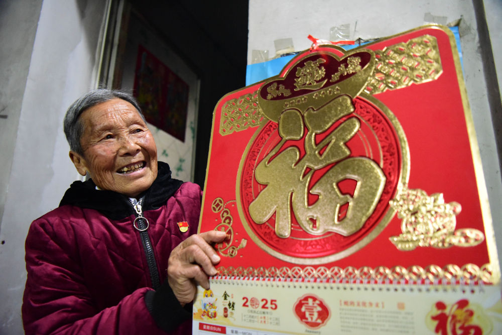 1月22日是北方農曆小年,張愛華家裏掛着2025新年曆。新華社記者朱祥 攝