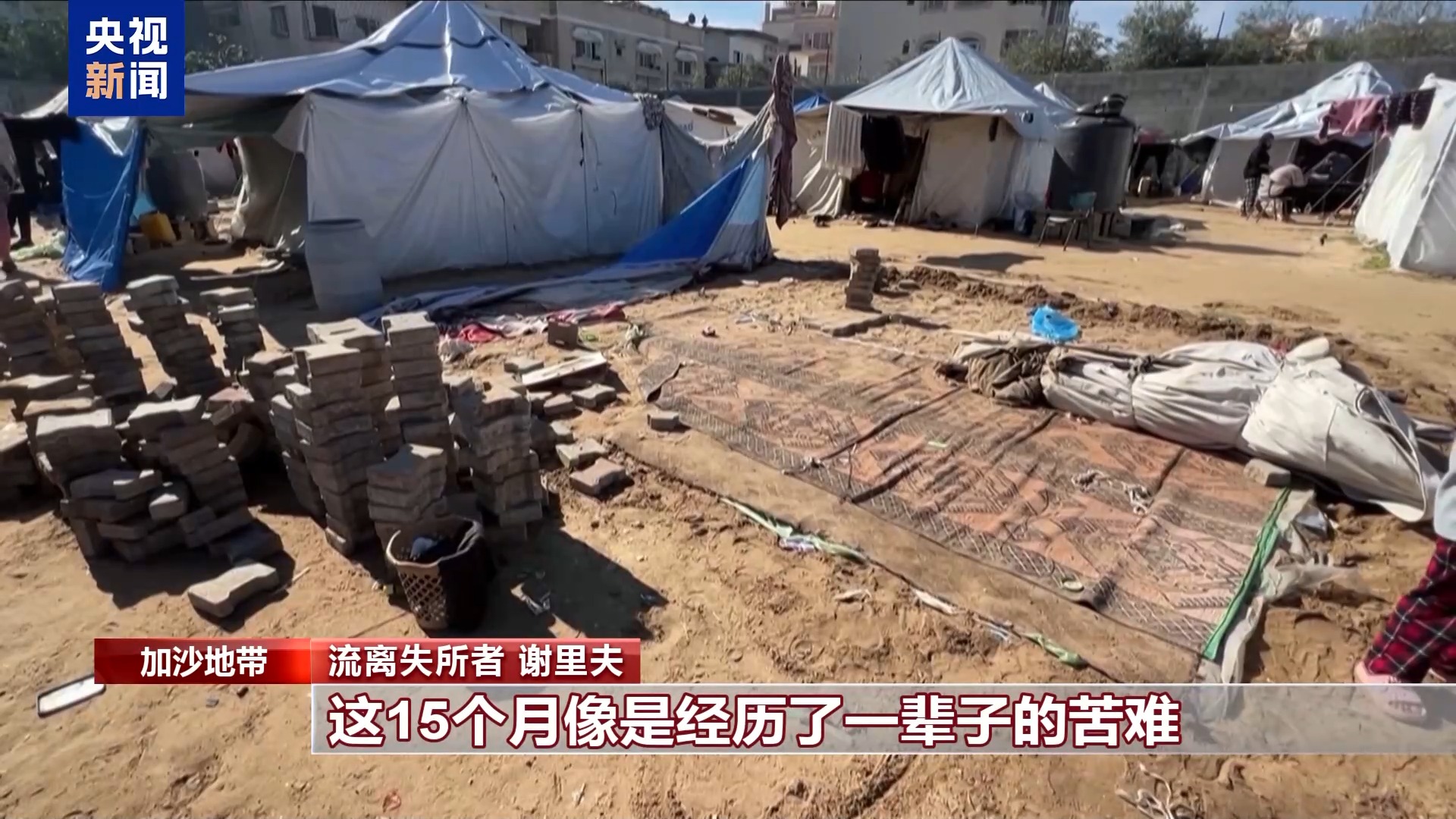 *流離失所者 謝里夫:*我們在這裏住了15個月,就像住了15年或20年,這15個月像是經歷了一輩子的苦難。以色列宣佈流離失所者這兩天就可以回家,所以我們拆除了帳篷,準備帶上我們的隨身物品。回家,這是我們聽到的最棒的消息。