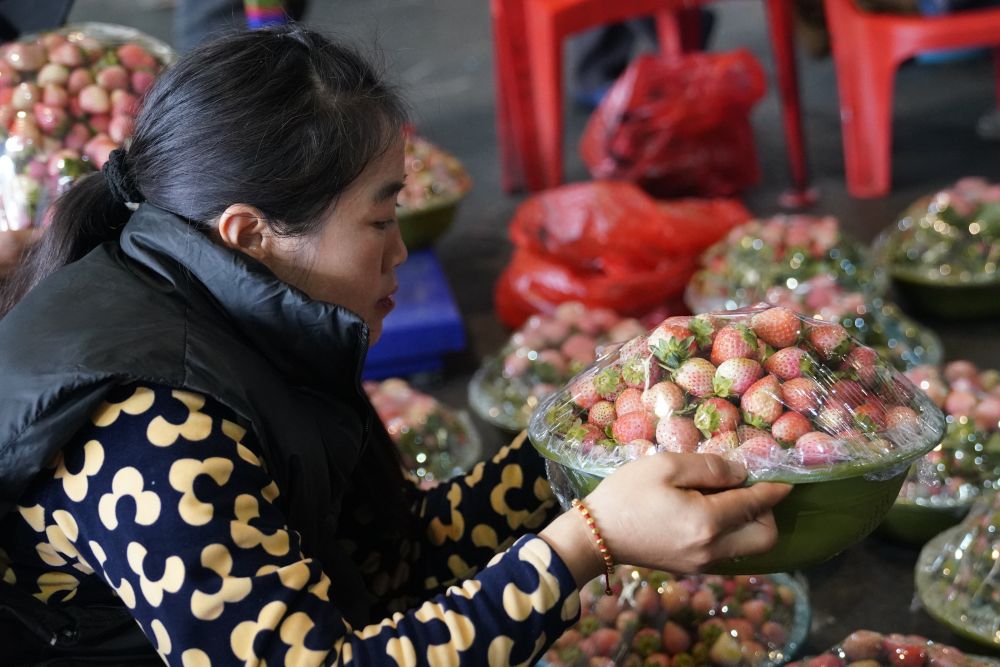 記者採訪還發現,高顏值、好彩頭的水果,成為許多年輕人的年貨首選。夢幻配色的粉玉草莓、象徵“心想事成”的橙子、寓意“新年節節高”的甘蔗……“90後”李霞宇説,帶回老家送給長輩,吃着新鮮寓意又好,討一個好彩頭。