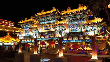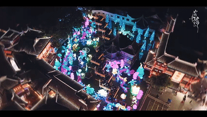 古老的飛檐亭台與璀璨的花燈交相輝映