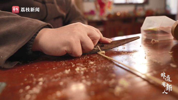 把竹子從中間劈開,如何把握着力點劈得對稱?如果不對稱,如何靠手感修正?劈到竹節處,該如何用力?種種不起眼的細節,都藏着諸多學問,一不小心便會劈到手。