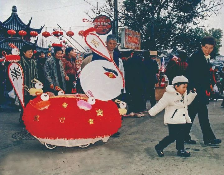上世紀90年代孩子拉着兔子花燈歡快奔走 圖源:南京秦淮區文化館