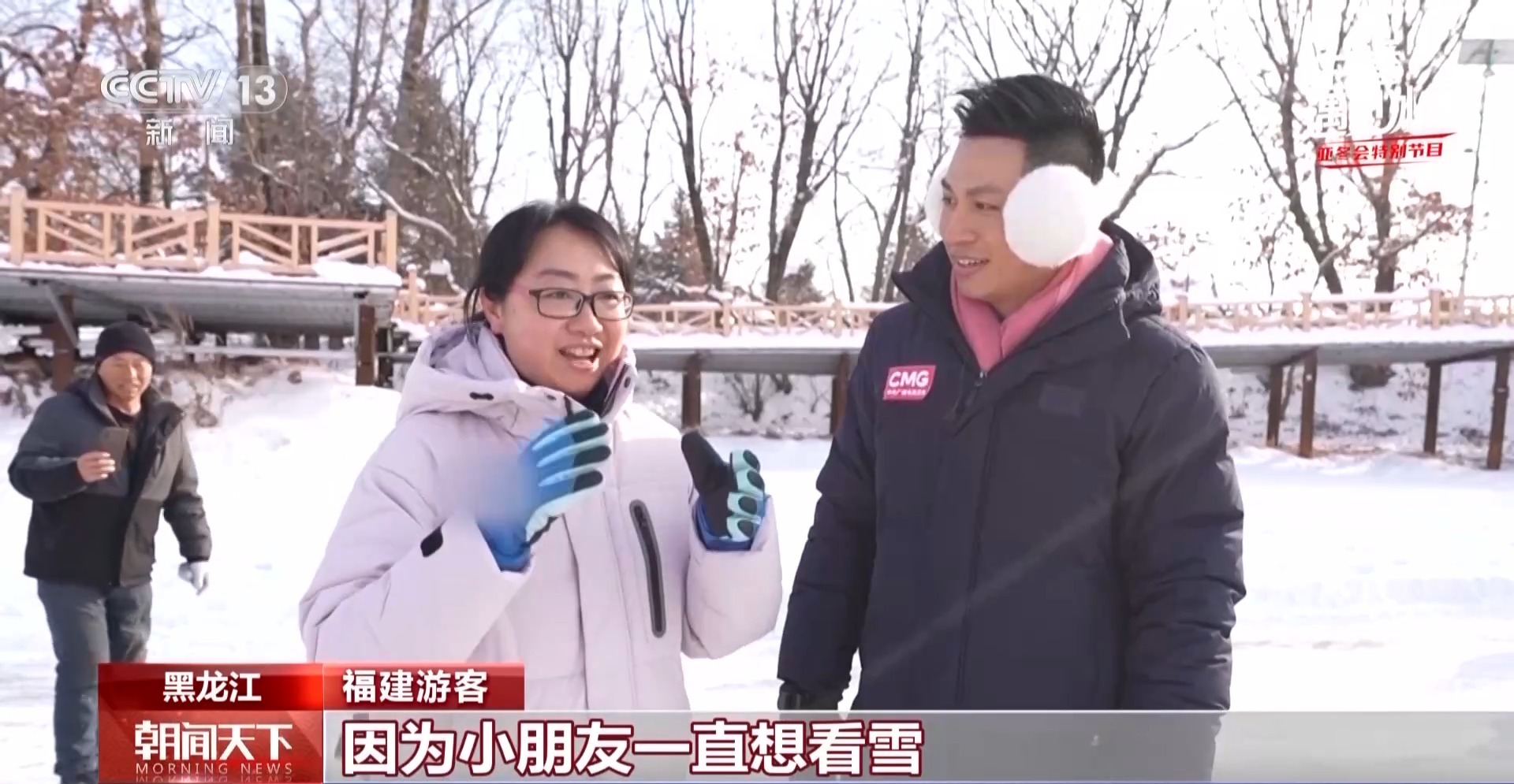 *福建遊客:*因為小朋友一直想看雪,想看真正的雪,他去年就想來結果沒成行,今年就一定要來了,真的很好玩。