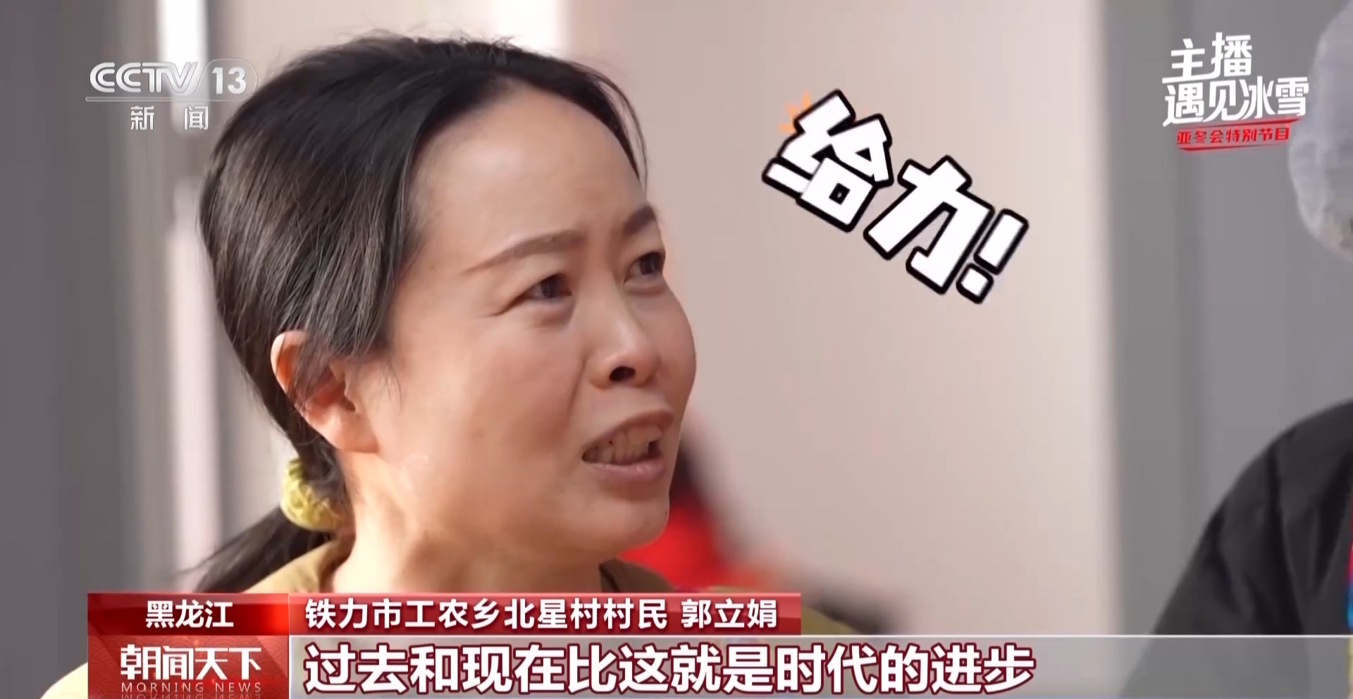 *鐵力市工農鄉北星村村民 郭立娟:*前些年就在家貓冬,可以隨時吃餃子,踩雪、堆雪人、打雪仗。但是收入跟現在比不了,現在跟過去比這就是時代的進步,這就是給力了!道也好了,哈爾濱也火了,像我們這邊的民宿,現在每年冬天我們都能有點額外收入。