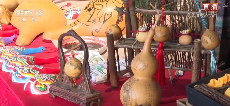 過年期間,還少不了裝飾一下家裏。那這裏的各種非遺產品就用得上了。蘭州過去有很多種葫蘆的地方,很多人過年都會買幾個葫蘆回去佈置家裏。除了各種題材的刻葫蘆,還有葫蘆臉譜。在西北很多地方,把葫蘆剖開做的舀水的器具叫馬勺,所以這些臉譜也叫馬勺臉譜。