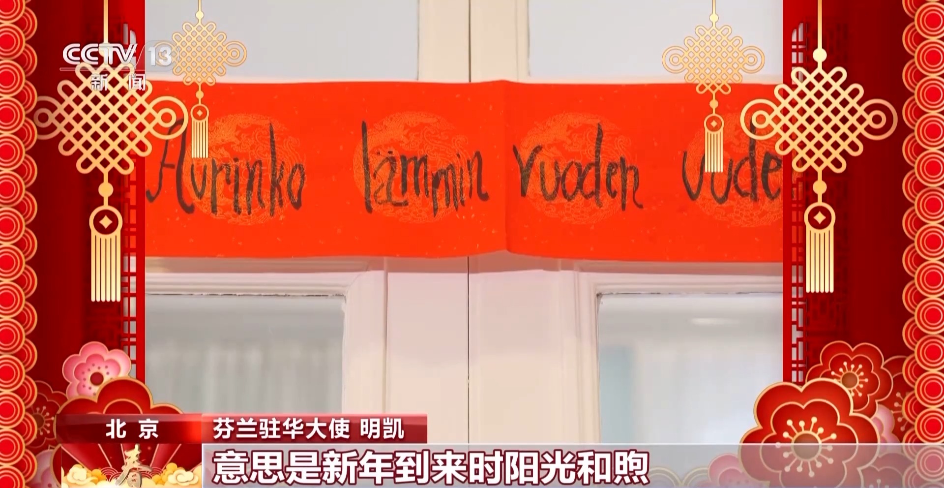 *芬蘭駐華大使 明凱:*上面(橫批)寫的是“日暖歲新”,意思是新年到來時陽光和煦。