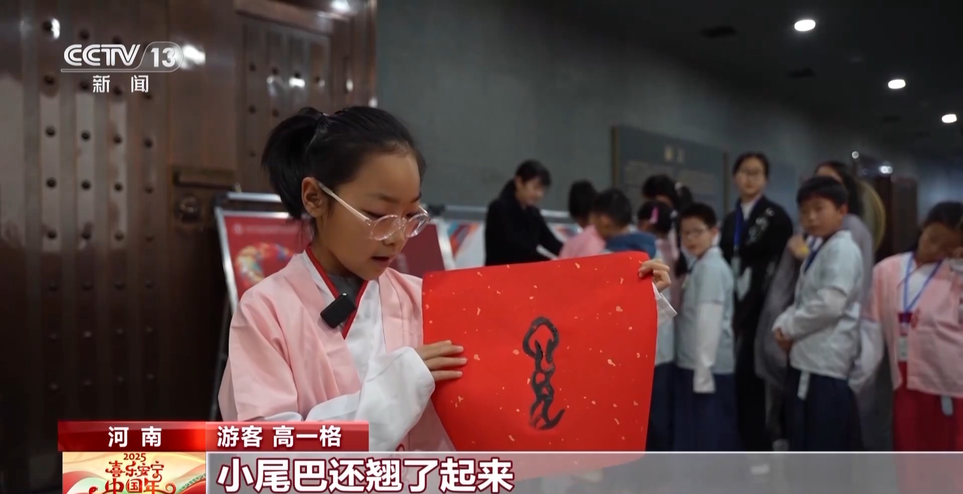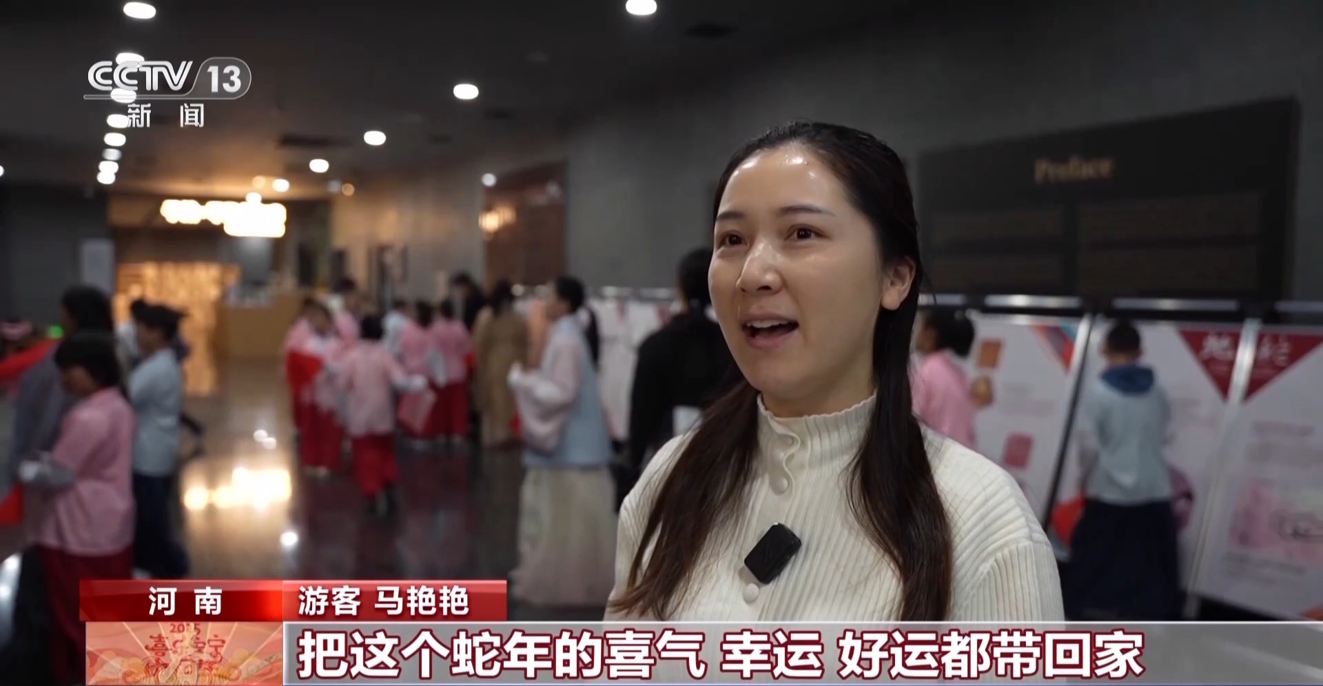 *遊客 馬豔豔:*甲骨文這個蛇跟咱們平時的蛇特別像,栩栩如生,覺得古代人特別有智慧。我也拿一個拓印回去,把這個蛇年的喜氣、幸運、好運都帶回家。